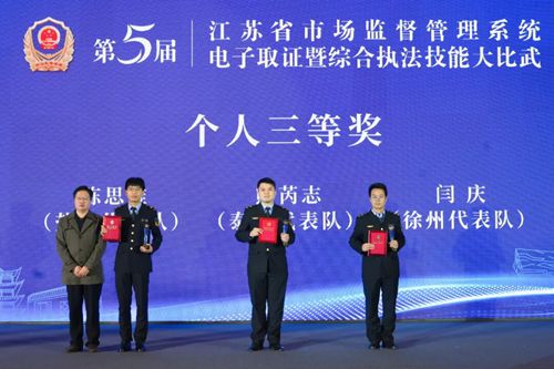 黄淮网(费坚真 通讯员 徐仕评)  12月2日,第五届江苏省市场监管系统电子取证暨综合执法技能大比武成功举办。代表徐州局参赛的闫庆、孔骁骁凭借扎实的专业功底、出色的临场发挥和紧密的团队协作精神,最终斩获团体二等奖和个人三等奖(闫庆)。